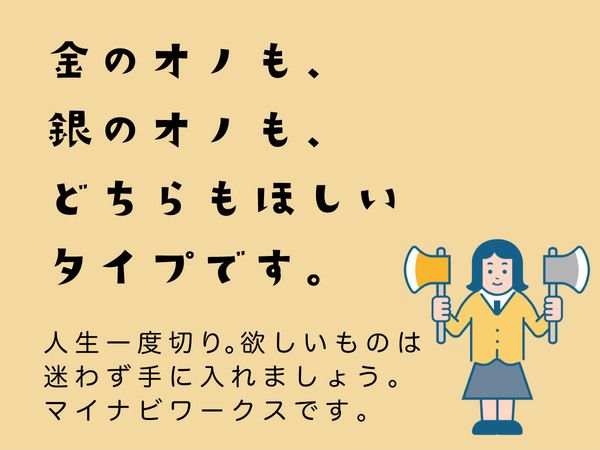 「キャリア志向じゃない。ガツガツタイプでもない。だけど、仕事は真剣! 評価もされたい。だからこそ、私にあった仕事がしたいの」。そんな⽅、⼤歓迎です。