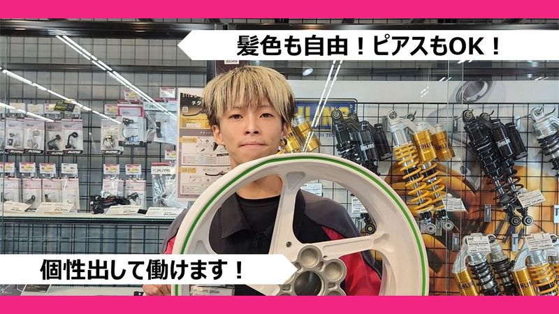 仕事内容 【髪型や髪色は自由!】 【接客業経験者歓迎】 【オートバイ好き歓迎!】 オートバイ用品総合企業のナップスです! 〉https://shops.naps-jp.com/〈 【おすすめポイント】 ★髪色や髪型は自由。個性出して働けます! ★オートバイに乗っている方は 知識を生かしながら業務に従事いただけます! ★オートバイをお持ちの方はピットの個人利用OK! 自分のバイクを最高のコンディションに。 ★経験でも歓迎。OJT(業務をしながら)、業務習得をサポートいたします 【仕事内容】 ヘルメットやジャケット等のアパレル、消耗品やカスタムパーツ他、 オートバイ用品の接客/販売、適合相談 ■オートバイ用品の販売/接客 ヘルメットの販売(商品説明や頭部計測)やジャケット/パンツのご案内 バイクパーツの適合案内(マフラーやレバーなどのカスタムパーツ) 他 ■作業受付 修理やパーツ交換にかかる案内/相談対応 受付書の作成 他 ■オンライン販売の出荷対応 商品の在庫確認/商品の梱包と出荷 ■売り場管理 店頭在庫の補充/商品の発注 ■レジでの接客/販売 ■変更の範囲 会社の定める範囲 レジ業務から始まり、徐々にステップアップで業務をお任せしていきます! 【勤務時間】 以下の時間内で週2日・7h~ ご相談可能です! ■平日 10:15~20:00 (休憩75分) ■土日/祝日 9:45~20:00 (休憩75分) (完全週休2日制/シフトにより決定) ※開店時間は店舗によって異なる場合がございます 【一日の仕事の流れ】 10:15|出勤・開店準備 10:30|勤務開始(午前中は車両整備の受付が多い傾向) 14:00|お昼休憩 15:00|午後業務(アパレル関係や消耗品適合のご案内) 17:30|夕方休憩(75分休憩を、昼:60分 夕方:15分で分ける方が多いです) 19:30|閉店準備(レジ締め準備、ショップリセットなど) 20:15|退勤 【スタッフの声をご紹介!】 ■スタッフKさん(20代男性) 入社後は販売職に就き、商品知識をはじめ気づきや発見を繰り返しました。そして3年が経過した今は部門のリーダーになりました。売り上げはもちろん大事にする一方 で、お客様のニーズに沿った提案をして喜んでいただけたときには一番やりがいを感じます。 ■スタッフMさん(40代女性) 子育てがひと段落してから、「バイクの免許を取ろう!」と思い立ちました。そのタイミングでナップス店舗が自宅 近くにできたので、「バイク関係のお店で働いたら少しはバイクがわかるようになるのでは…」と思い応募しました。知識がない状態の入社でしたが、今はお客様へ自分の経験 を踏まえたアドバイスができるようになりました。