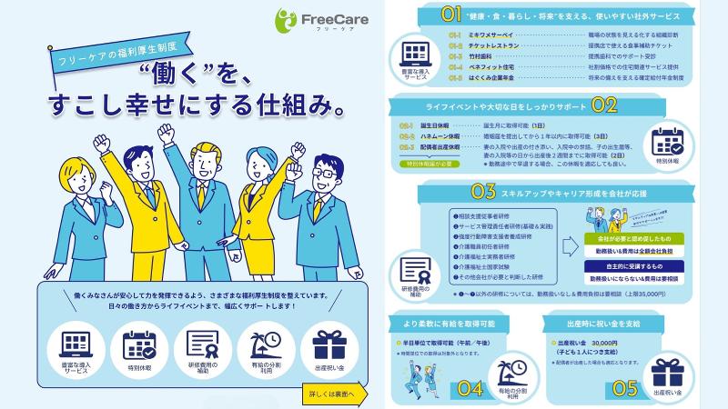 アピールポイント: ■ 小児特化の新チームで「その子らしさ」を支える 2025年10月に小児専門チームとしてリニューアル。 障がいのあるお子さまの成長を、親御さまと一緒に支える訪問看護です。 「昨日よりできた」「今日は笑顔が増えた」など、日常の小さな変化を大切にしています。 ■ チームで支え合う文化が根付いた職場 当ステーションが大切にする価値観は 「素直」「嘘をつかない」「きちんと向き合う」 の3つ。 困ったときにはすぐ相談でき、ひとりで抱え込まない体制が整っています。 スタッフ同士の距離が近く、あたたかい雰囲気の職場です。 ■ 無理なく続けられる働き方 * 夜勤なし * 残業ほぼゼロ * 訪問件数は1日2〜3件 * JR立花駅から徒歩3分 丁寧な看護を行うために、スケジュールにゆとりを持たせています。 家庭との両立やプライベートの充実を図りたい方にも最適です。 ■ 未経験でも安心の教育体制 体系化したオリエンテーション、同行訪問、月1回の1on1、 外部サーベイなどの仕組みで、未経験の方もしっかりフォロー。 小児看護の基礎から専門性まで段階的に学べる環境があります。 ■ フリーケアのビジョン 「関わった人の人生が少しでも良くなること」 そのために、業界の質を高める取り組みや、 スタッフの働きやすさを守る制度づくりに力を入れています。 看護の“やさしさ”と“専門性”を両立した組織を一緒に育てていきませんか。