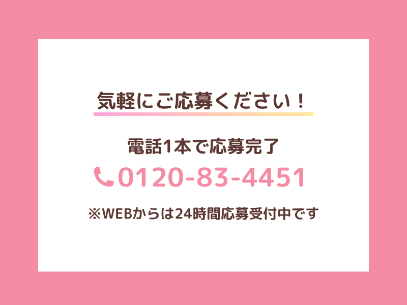 選考プロセス 1. Web応募または電話応募 2. 採用担当より日程ご連絡 3. 面接(1回) 4. 内定・入職 ✅在職中の方も応募OK ✅まずは見学だけもOK ✅応募後は固定電話または携帯からご連絡します