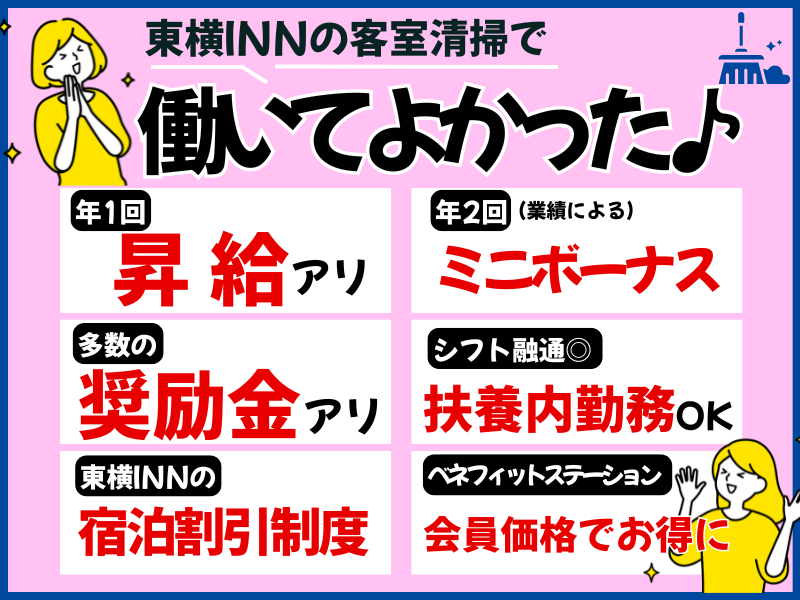 仕事内容 家事も、学業も、ちゃんと大切に。 土日だけの“ちょうどいい清掃ワーク”。  ̄ ̄V ̄ ̄ ̄ ̄ ̄ ̄ ̄ ̄ ̄ ̄ ̄ ̄ ̄ ̄ ̄ ̄ ̄ 「平日は忙しいから、働くなら週末だけ」 「土日は家にいる時間も多いし、 少しだけ家計の足しになれば嬉しい」 「人と話す仕事より、 静かに手を動かすほうが向いているかも」 そんな方に選ばれているのが、 東横INN新大阪駅東口の 【客室清掃スタッフ】です! ✅ 働き方はとってもシンプル  ̄ ̄V ̄ ̄ ̄ ̄ ̄ ̄ ̄ ̄ ̄ ̄ ̄ ̄ ̄ ̄ ̄ ̄ 【土日両日限定】 【10:00~15:00】の5時間だけ。 朝はゆっくり、 夕方には自分の時間や家族時間に戻れます。 ✔ 週2日・土日だけ ✔ 扶養内OK/WワークOK 「無理なく続けられる」が、 いちばんの魅力です。 ✅ お仕事内容  ̄ ̄V ̄ ̄ ̄ ̄ ̄ ̄ ̄ ̄ ̄ ̄ ̄ ̄ ̄ ̄ ̄ ̄ 担当するのは、チェックアウト後の客室。 ・ベッドメイキング ・バス・トイレ清掃 ・床の掃除機がけ ・タオル・備品の補充 ・アルコール消毒 など 接客はありません。 作業はすべてマニュアル通りでOK。 「久しぶりのお仕事で不安…」 「バイト自体が初めて…」 そんな方も、先輩が横について丁寧に教えます◎ ✅ こんな方が活躍しています  ̄ ̄V ̄ ̄ ̄ ̄ ̄ ̄ ̄ ̄ ̄ ̄ ̄ ̄ ̄ ̄ ̄ ̄ ◎ 平日は家事や育児が中心の主婦さん ◎ 土日だけ働きたい大学生さん ◎ 人に気を使いすぎない仕事を探していた方 ◎ コツコツ作業が好きな方 ✅ 続けやすい理由  ̄ ̄V ̄ ̄ ̄ ̄ ̄ ̄ ̄ ̄ ̄ ̄ ̄ ̄ ̄ ̄ ̄ ̄ ✨ 5時間だけだから体への負担が少ない ✨ 静かに集中できて、気疲れしにくい ✨ 決まった作業で覚えやすい ✨ 生活リズムを崩さず働ける 「週末の数時間」が、 ちょっとした収入と 気分転換の時間に変わります♪ 【応募方法】 ✨直接採用担当とお話ししたい方 →電話での応募大歓迎! 06-6160-1045 までお気軽にお問い合わせください! ✨【応募】ボタンから応募の方 →エントリー後、担当者からご連絡差し上げます。