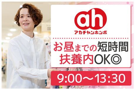 仕事内容 << アカチャンホンポのおすすめポイント >> ・未経験スタートのママさんスタッフ多数活躍中!スタッフの子育ても全力で応援します! ・社内資格取得で手当支給!スキルUPで給与もUP♪ ・18時以降&土日祝は時給UP! <賞与2回/年、昇給1回/年など嬉しい待遇たくさん★> 【人気の時間帯♪早番シフト】 家計のプラスαに、 午前のスキマ時間を有効に使って稼げる短時間ワーク◎ 家事・育児との両立やブランク&お仕事復帰にも最適♪ ★短時間からフルタイムへの変更も相談可! ライフステージの変化に応じて働けるのも魅力です。 家事や育児との両立を応援します◎ 【仕事内容】 マタニティ・ベビー・キッズ用品に携わるお仕事です。 <具体的には…> ・接客 ・レジ応対 ・商品整理 ・売場づくり ・商品発注・品出し ・店内清掃 など 仕事の流れや業務内容は先輩スタッフが丁寧にお教えするので、接客・販売に自信がなくても大丈夫◎ 自分ならどんなお店でお買い物をしたいか、 商品の魅力がどうすれば伝わるか、など お客様の立場で考えながらお店作りに関われるのが このお仕事の魅力の一つです。 【うれしい時給UP&賞与&資格手当アリ】 ◆時給UP 毎日18時~は時給50円UP! 土曜日は終日50円UP+18時~50円UPで\最大100円UP!/ 日曜日・祝日は終日100円UP+18時~50円UPで\最大150円UP!/ ◆賞与 条件を満たしたアルバイト・パートのスタッフに 年に2回賞与があります♪ ◆資格手当 マタニティアドバイザーやシューアドバイザーなど、社内資格制度を設けています。 資格を取得した方には手当を支給! 【スタッフの声】 商品や子育てに関しては、常駐しているマタニティアドバイザーが 対応してくれるので、子育て経験がなくても安心して仕事ができています。 正社員を目指し、キャリアアップする人もいれば、 契約社員のまま安定的に稼ぐ人もおり、その人の働き方を尊重 してくれるので、居心地が良く働きやすいです!