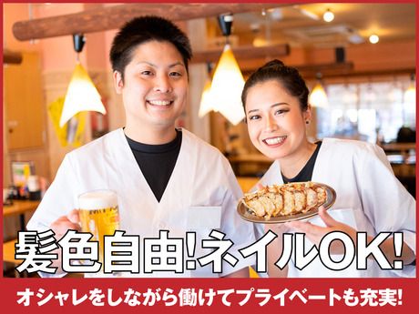 資格 外食経験者歓迎!未経験者活躍中! 学生や主婦、フリーターなど、様々な年齢層のスタッフが活躍中! アルバイト・パートのスタッフの90%以上が10代や20代! 部活やサークル活動など、学校生活との両立がしやすいと好評です。 また、職場の雰囲気の良さも特徴の1つで、ミスをしても前向きにフォローし合える環境となっています。 ひとくち餃子の頂が初バイトという方も多く、「最初は右も左もわからなかったけど、先輩スタッフが丁寧に教えてくれたから不安なく働けた」という声も。 扶養内勤務OK 副業・WワークOK まずは元気な挨拶ができればOK! あなたのご応募をお待ちしております。友達との応募もOK