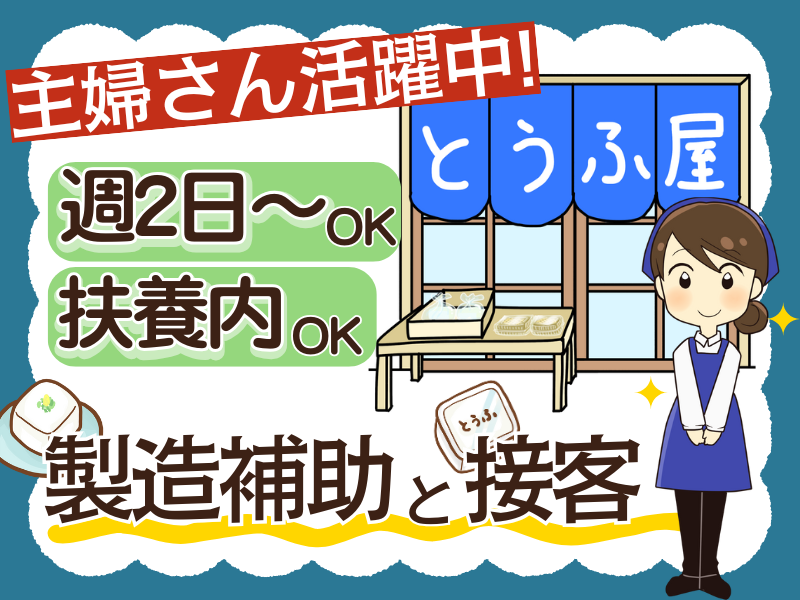 とうふなどの製造補助と接客スタッフ
