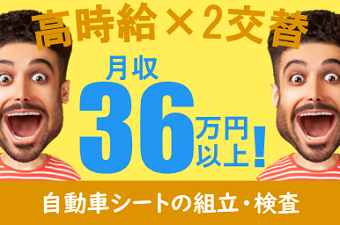 大手自動車工場にてシートの組立や検査など|2交替|立ち作業|寮完備