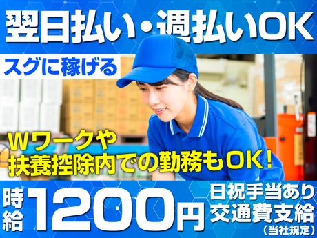 資格 未経験歓迎(経験や資格は一切必要ありません) 【こんな方を歓迎します】 ●学校の授業がない日に気軽に働きたい学生さん (高校生、専門学校生、短大、大学生) ●芸人・声優・俳優など夢を叶えたいフリーターさん ●扶養控除内で働きたい主婦(夫)さん ●健康を兼ねて軽く体を動かしたい中高年~シニアさん ●ブランクのある方やWワーク(スキマバイト)さん ●ハローワークでお仕事を探している方 仕分けだけでなく、ピッキングやシール貼り、梱包、検品、ライン作業など作業系ワークのお仕事を探している方にはピッタリのお仕事です。期間限定や短期・単発で働いていた方も、お気軽にご応募ください!