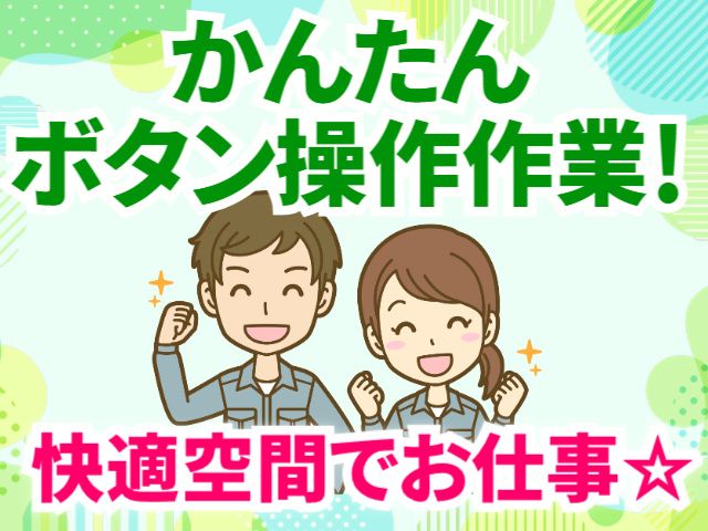 仕事内容 スマホやテレビなど身近な製品に 使われている部品の製造作業です! 作業内容はいたってシンプル! ボタン操作のみです! <お仕事内容について> 空調ばっちりのクリーンルーム内で チップ製造マシンのボタン操作が 主な作業です。 具体的には ・チップをマシンにセット ・スタートボタンをポチ! ・製造されたチップを取り出し ・近くの指定場所に置く この繰り返し作業なので、 重い物を運んだり、工具を使う作業は 一切ありません! <おすすめポイント> ・重量物一切なし! ・工場勤務の経験一切不要! ・未経験OK! ・ほぼよく残業があってしっかり稼げる! ・喫煙所あり ・髪色はある程度の茶髪OK! ・1食430円程度の社食あり! <未経験OK> 製造業界未経験の方もOK! しっかりとした研修もあるので、 安心してはじめられます! <こんな方にもおすすめ> 主婦(夫)さんやフリーターの方も 活躍できるお仕事です! パート・アルバイトからの転職もOK! 20代~40代の男女スタッフ活躍中! <充実した研修有> しっかりとした研修あります。 分からないところは先輩スタッフが フォローしてくれるので、安心してください。 質問がいつでもできる環境なので スキルアップも可能です! こちらのお仕事に興味のある方、 派遣のお仕事をお探しの方は お気軽にお問い合わせ下さい。 あなたのご応募お待ちしております。
