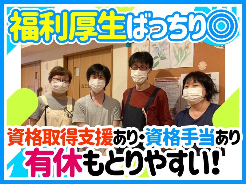 仕事内容 ★1:1のゆとりある介護を実現 ★研修や丁寧なサポートでスキルアップ ★手当充実!手厚い待遇で定着率抜群! - ゆとりを持って利用者様に寄り添える。 未経験からじっくり介護を学べます◎ - “ソーシャルコート恵美須西 清月”は 一般的な老人ホームとは違い、 高齢者の方向けの「住まい」。 訪問介護の形をとるため、 介助中の入居者様の掛け持ちはありません。 1人ひとりの入居者様と、 ゆっくり&じっくり向き合えます。 慌てず落ち着いて働けるため、 始めて介護に挑戦する方も 自分のペースで仕事を覚えていけますよ。 せっかく介護を仕事にするなら、 無理せず長続きする環境で。 あなたのご応募をお待ちしています! / 職場の魅力を さらにご紹介! \ [1]ゼロから学べる研修制度充実 - ◎社内研修センターでステップアップ! ◎資格取得支援あり!取得費用を支援 ⇒「介護職員実務者研修」など、 業界で役立つ資格をお得に取得可能! [2]待遇充実で安定した収入 - 未経験でも月給25万円以上支給! 昇給年1回・賞与年2回に加え、 ・介護福祉士手当(月3万円) ・ケアマネ手当(月1万円) ・退職金制度(勤続3年以上) などもあり、収入面も安定します。 [3]相談しやすさ抜群の心地よさ - 当施設の職員は仲が良く 人間関係で悩むことなし! 日頃から連携が取れているので 独り立ち後も相談しやすく 安心しながら介助に専念できますよ。 ▽ 未経験入社の女性スタッフ(入職7年目)からは 「同年代が多く協力しあえる雰囲気が とても良いなと思います。 男性スタッフも多く、 困った時は頼りにできて安心」との声も♪ もっと当施設について知りたい方は 職場見学を行っているので お気軽にお問い合わせくださいね。 - 【お仕事内容】 サービス付高齢者住宅で ・食事 ・入浴 ・着替え ・排泄介助 などの身体介護や、 日常生活のお世話・生活援助をお任せします。 介助後の実施記録はタブレットで電子化。 手間なく簡単に記録していただけます。 ★通常の生活支援に加えて… 当施設では「レクリエーション活動」を実施。 月に4回のおやつレクリエーションでは たこ焼きやパンケーキなどを作って食べたり、 専門の方にお越しいただき、 園芸や映画鑑賞、体操を行ったり… 様々な活動をしています。 色んな利用者様と楽しく活動することで スタッフの方が逆に元気をもらっています! \あなたのアイデアを活かせます/ レクリエーション活動では 「利用者様に楽しんでもらえるように より良いものを創って行こう!」 とスタッフが中心となって意見を出し合っています。 日頃の業務はマニュアル化されていますが、 施設長もスタッフも 「こんなことに挑戦したい」という アイデアを聞き、実践させてくれるので やりがいも十分感じられます。