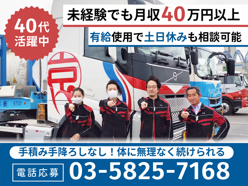 仕事内容 ╭━━━━━━━━━.☆..━╮ ここがPOINT⭐ ╰━v━━━━━━━━━━╯ ✅4月入社大歓迎! 一時面接はWEBで実施! 二次面接から最短1週間以内の入社可能◎ ✅食事補助あり! ✅各種資格取得支援制度あり ✅従業員持ち株制度あり ✅嬉しい日祝休み♪ 有給使用で土日休みも相談可能◎ ✅40代活躍中! 職種:石油品大型タンクローリードライバー 内容:関東圏のガソリンスタンドに 石油製品を配送 勤務時間:5:00~17:00の間で実働8時間 休み:週休2日制(日祝日・会社指定日) ⭐電話でスグ応募!!⭐ << ☎03-5825-7168>> ┏━━━━━━┓ ┃ *仕事内容* ┃ ┗━V━━━━┛ ⏩東京及び神奈川県内のガソリンスタンドに 石油製品を配送して頂きます。 ✅手積み・手降ろしなし! 体への負担少なめ◎ ✅簡単シンプル作業♪ 液体輸送なので工場到着後はタンクに ホースをつないでボタンを押すだけ! ✅髪色は茶色や黒など 清潔感があればOK◎ ・―・☆・―・☆・―・☆・―・☆・―・ 当社は最短3日以内で一次面接ができます! また、面接から最短1週間以内の入社可能◎ 入社日は柔軟に調整OK! 「次の職場を早めに確保したい」 そんな方をしっかりサポートします。 ★「簡単で稼げる仕事がしたい!」 「運転が好き」「ドライブが趣味」 「身体を動かす仕事がしたい」 等きっかけは何でもOK♪ ★未経験歓迎♪充実研修✨ 入社後はベテランスタッフがイチから 丁寧に指導するので、未経験の方や ブランクがある方もご安心ください◎ 2週間~3ヶ月の同乗研修もあり!