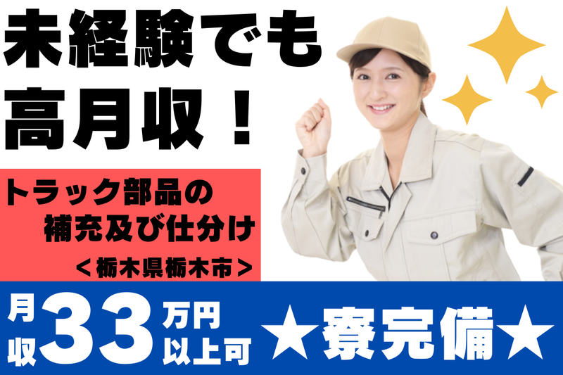 仕事内容 ●寮・社宅完備 ●20・30代活躍中、男性活躍中 ●未経験・初心者活躍中 ●長期休暇あり、マイカー通勤OK 【 仕事内容 】 ロジスティクスセンター内で 部品の補充や仕分けをお願いします。 扱うのは、トラックの部品。 【詳しい仕事内容】 ・出庫作業 エンジンに使用される部品が 格納されている棚を巡回をしながら 不足している部品を探します。 不足している部品があれば 荷台を使用し仕分けのされた所から 持ってきて格納して頂きます。 不足している部品と格納する部品に 誤りがないか、携帯サイズほどの ハンディを使っての確認をします。 ・仕分け作業 かごに入った部品を指定の場所まで 仕分けてもらいます。 各部品ごとの品番を確認し 品番ごとに仕分けをして頂きます。 重いものは20キロほどありますが 荷台に乗せて運ぶので 腰への負担も少ないです。 ※基本的には工程が分かれていて 出庫作業がメインとなりますが、 進捗によってはヘルプに入る可能性もあります。 《 安くておいしい食堂あり! 》 昼間に利用可能な食堂完備! 1食270円から!格安です♪ 《 未経験からでも高月収! 》 月収例33万円以上! 未経験もこれだけ稼げます! <なぜこんなに稼げるの??> それは... 【1】大手メーカー系列企業のため 安定した基盤がある! 【2】しっかりした研修プログラムのため 未経験でもしっかり一人前に育てる 環境がある! 【3】モノづくりは人手が欲しいので 安定した収入をお渡しして長く働ける 環境を整えている! このため、初心者でも、未経験でも しっかりと高月収のお給料となっています! 転職を検討している方、 仕事決定の決め手に欠けるためなかなか応募に 踏み出せない方もこの機会に ぜひ高月収のお仕事に転職しませんか?