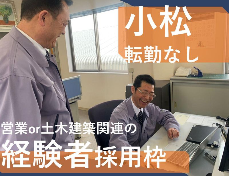 仕事内容 【建設機械レンタルの営業】 ✨営業経験or土木建築業界の経験者の 採用枠です! ✨東証プライム上場株式会社カナモトの グループ会社 ✅転居を伴う転勤なし! ✅年間休日114日 ✅営業職は男性5名活躍中 ✅個人ノルマはありません! 当社は新幹線や高速道路などをつくる、 公共インフラ工事の現場に「建設機械」の レンタルを行っています! 【具体的には】  ̄ ̄ ̄ ̄ ̄ ̄ ̄ ̄ ・南加賀地域を中心とした北陸三県エリア ・建設会社や建設現場へ社有車で訪問 ・担当エリアを1日6~7件の取引先ほど ・案件のヒアリング、見積書作成、提案~ 受注、工事期間中の現場サポートなど 【建設機械のレンタルって?】  ̄ ̄ ̄ ̄ ̄ ̄ ̄ ̄ ̄ ̄ ̄ ̄ ̄ ̄ ̄ ✨主にバックホー、発電機、4トンダンプを 扱っています。 土木業界(地元の土木建設会社、設備会社) のお客様などに、工事に使う建設機械を レンタルしています。 例えば、下水道工事、河川工事や災害時の 復旧工事に当社の建設機械が活躍しています! ✨お取引先へのルート営業がメイン! 定期訪問を通じて信頼関係を構築! 訪問時は日々のたわいもない会話から 始まり、ご相談をいただいた際には 丁寧に打ち合わせを行います。 安定的なご依頼がありますので、 飛び込みやテレアポはありません。 (営業所ごとの目標はありますが、 いわゆる個人ノルマなし) 受注後は事務さんや整備士、運搬業者に 共有しながらチームで進めていきます! 一人で全てを抱える心配はありません。 ✅【勤務地について】  ̄ ̄ ̄ ̄ ̄ ̄ ̄ ̄ ̄ ̄ *白山市・加賀市に転勤の可能性あり (※転居を伴わない) *白山市・加賀市の事業所での応募も可能です◎ ✅【面接1~2回】  ̄ ̄ ̄ ̄ ̄ ̄ ̄ ̄ ✨面接の場は、気負いせずにお越しください♪ あなたらしさを知る機会であり、 当社のことを知っていただく場です! ★後半に社員インタビューあり!