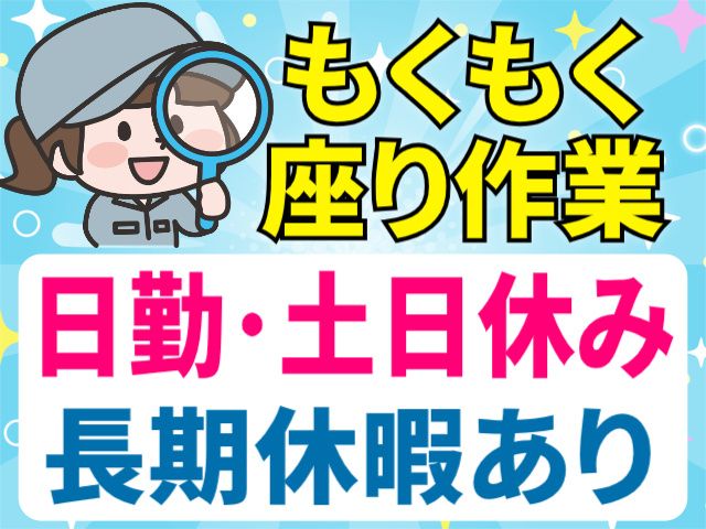 日払いOK|年間休日117日|新工場|無料送迎あり|長期休暇有|座り作業|子育て世代在籍中|見学可|