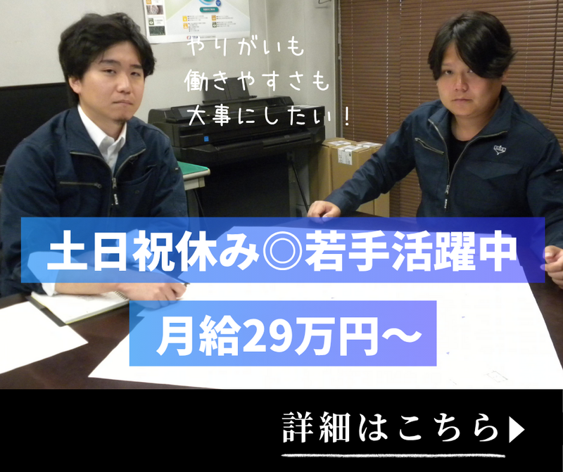 仕事内容 *‥‥*‥‥*‥‥*‥‥*‥‥*‥‥* 今回の募集する職種は、 基本的に社内での作業が中心となります。 *‥‥*‥‥*‥‥*‥‥*‥‥*‥‥* 《この求人のポイント》  ̄ ̄ ̄ ̄ ̄ ̄ ̄ ̄ ̄ ̄ ̄ ̄ ̄ ✅年休127日、土日祝日休み ✅未経験OK!サポート体制抜群で安心◎ ✅賞与年2回!交通費全額支給! ✅長期休暇あり!休みも充実☆ ✅中野駅より徒歩8分!通勤ラクラク♪ ✅デスクワーク中心 《仕事内容》  ̄ ̄ ̄ ̄ ̄ ̄ ̄ ̄ ̄ ̄ ̄ ̄ 工事現場での仕事はいろいろありますが、 私たちの会社では… ビルや工場等の冷房・暖房用の空調配管 や空調ダクトの保温保冷のために 保温材を取り付ける工事を行っております。 簡単にご説明すると、 「熱を守るための工事」です。 1953年の創業より、断熱工事の専門会社 として多くのお客様から高い評価と信頼を いただき省エネや地球環境の保全に 広く貢献しています。 【社内における業務内容】 ・見積もり、資料作成 ・現場の職人との電話・作業確認 ・現場で使う材料の手配 ・作業員の手配 【屋外における業務内容】 ・現場確認 ※週に2回程度(現場の状況によって変動あり) ★この仕事を通じてキャリアを積み 人脈をぜひ増やしてください! 《工事実績》  ̄ ̄ ̄ ̄ ̄ ̄ ̄ ̄ ̄ ̄ ̄ ̄ ̄ ・ディズニーランドホテル ・歌舞伎町タワー ・虎ノ門ヒルズ ・新国立競技場 など 《頑張りをしっかり評価◎》  ̄ ̄ ̄ ̄ ̄ ̄ ̄ ̄ ̄ ̄ ̄ ̄ ̄ ̄ ̄ 頑張りがしっかり評価される環境で、収入アップも目指せます。 未経験からでも月給29万円+賞与スタートとなります♪ * … * … * … * …* … * …* …* … 社員インタビュー * … * … * … * …* … * …* …* … ■入社2年目/20代男性 ■前職:他業界営業 Q: 当社への入社のきっかけは? A: 前職は、数字に追われる毎日で、心身 ともに疲弊していました。 もっと自分の時間を大切にできる環境で 働きたい、そう強く思うようになり、 労働条件を軸に転職活動をスタート。 そこで出会ったのが当社でした。 決め手になったのは、面接で感じた社員 の方々の温かい雰囲気。 ここでなら、安心して新しいスタートを 切れると確信しました。 Q: 実際に働いてみていかがですか? A: 土日祝日はしっかり休めるので、自分 の時間が増え、趣味や家族との時間を 満喫しています。 半期に一度の面談では、自分の頑張りを きちんと評価してもらえる実感があり、 給与にも反映されるのが嬉しいですね。 転職して、本当に良かったと思って います! ■入社5年目/30代男性 ■前職:飲食業 Q: 前職に比べて何が変わりましたか? A: 毎日変わらず同じ作業ばかりだったた めなかなかやりがいを感じられません でした。 お客様や協力会社の職人さんなどと チームで仕事進めていくので、 完了したときにはとても達成感が あります。 Q:改めて感じる会社の魅力はどこですか? A: 一番の魅力は、社員同士やお客様、 協力会社様との関係性の良さです! 年に一度のBBQ大会や慰安旅行など、 部署を超えた交流も盛んに行われて います。普段からコミュニケーションが 取りやすいので、困ったことがあっても すぐに相談できる環境です。 何より、人々の集まる場所の安全・快適 な環境づくりに貢献できるという仕事 に、大きな誇りを感じています! \\支店長よりメッセージ//  ̄ ̄ ̄ ̄ ̄ ̄ ̄ ̄ ̄ ̄ ̄ ̄ ̄ ̄ ̄ ̄ ̄ ̄ 社員と職人さんが一致団結してお客様の 期待以上の成果を届けるために コミュニケーションを大切にしています。 “話し合う”、“助け合う”、“相談し合う” そんな “合う” 機会を通じてみんなが 成長することを望んでいます。 この会社で成長して下さい。しっかりサポートします。