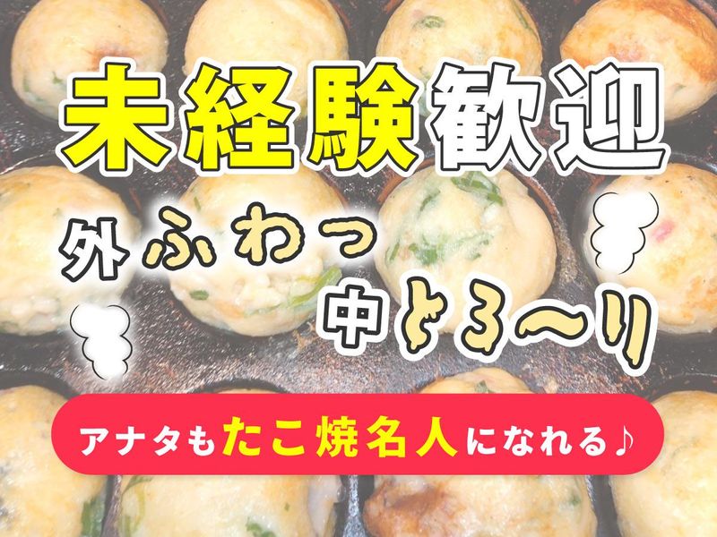 仕事内容 ★★空いてる土日祝に働こう!★★ <土日祝に入れる方の募集!> ”月1回~”でもOK!超柔軟シフト◎ ★★★★★★★★★★★★★★★★ ✨オススメPOINT!✨ ⭐学校が休み・本業が休みの 土日祝だけで収入UP♪ ⇒空いてる時間を有効活用! シフトは超柔軟に対応できます! ⭐雨にも濡れずに出勤可能! ⇒駅構内にあるので、通勤にも便利♪ ご近所さんや近隣の大学生も活躍中! ⭐イベント時には手当あるかも?! ⇒一定の売上に達成すると、 その日出勤の方に手当がでます◎ 直近では花火大会の日に、 5000円ほどの支給がありました☆ ⭐時間が経つのはあっという間! ⇒土日祝は公園へ遊びに来る方や お買い物に来られる方で大賑わい♪ 忙しいので、気づいたらもう退勤時間? なんてこともあるかも! ――――――――――――――――――― <<仕事内容は?>> レジ・ドリンク作り たこ焼きや焼きそば作りをお任せ! 入社後は… まずはレジ、ドリンクの入れ方から始め、 少し慣れてきたらたこ焼き・焼きそばを 作る練習をしていきます◎ ♪たこ焼き名人になれちゃうかも♪ 「たこ焼き作るの難しそう…」 「料理なんてしたことない!」 という方でも大丈夫♪ 実はシンプルで 簡単&楽しく作れちゃいます◎ 未経験だったスタッフたちも あっという間に慣れてました☆