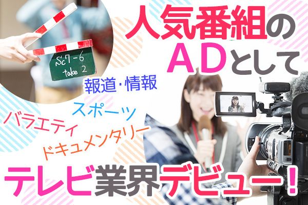 タイトル 【未経験OK!】某アイドル×芸人の人気バラエティ番組のAD募集!! 職種 アシスタントディレクター 【未経験OK!】某アイドル×芸人の人気バラエティ番組のAD募集!! 雇用形態 派遣社員 仕事内容 未経験OK!人気バラエティー番組のAD(アシスタントディレクター)募集★ *~~~*~~~*~~~*~~~* 番組の面白さは、“人の本音”が出ること。 ふだん語られない話も、ロケやインタビューで一気にリアルになります! そんな番組の裏側を支えてみませんか?! *~~~*~~~*~~~*~~~* 具体的にお願いするお仕事内容はこちらです↓ ●撮影・ロケ準備(スケジュール調整/小道具の準備など) ●台本の印刷・配布 ●収録現場での進行補助 ●編集作業のサポート ●出演者・スタッフの対応 など 番組制作に最初から最後まで関われます★ *…*…*…*…*…*…*…*…*…*…*…*…*…* 未経験でもOK!! 先輩ADと一緒に成長できる現場なので安心♪ *…*…*…*…*…*…*…*…*…*…*…*…*…* 募集の背景 テレビ制作の現場は、地道な準備と現場での判断の繰り返し。でもその先にあるのは、放送を見て笑ってくれる誰かの存在です。 今回は、より多くのロケ・企画に対応していくために、未経験から一緒に走ってくれる制作ADを新しく募集することになりました。