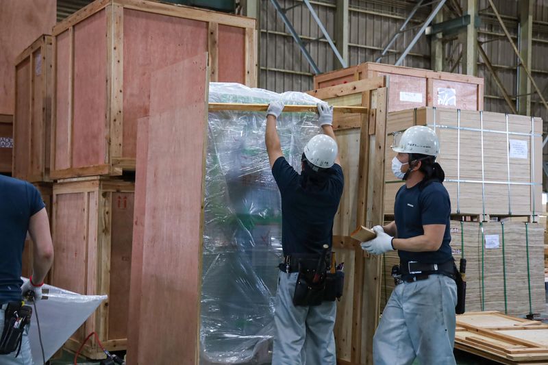 機械輸出用の箱を作る製造・組み立てスタッフ