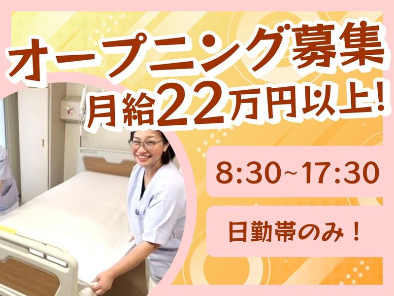 仕事内容 \医療業界なら好条件で働けます!/ ⭐月給22万円以上 ⭐1日8時間勤務で残業なし ⭐完全週休2日制 ⭐医療の資格は不問 ⭐日勤専属 ⭐排泄や入浴介助ナシ 「介護の仕事は好きだけど、 人手が足りなくて残業ばっかり… しかも排泄や入浴介助が苦手で。」 「看護師をしていたんだけど、 夜勤が体力的にちょっとキツくなってきた… 日勤固定で働いてみたいな。」 弊社では、こんなお悩みのある 介護業界や医療業界の別職種からの 転職者が多数活躍しています! いままで培った経験や知識を活かして 収入も働く条件もアップ♪ さらに働きながら資格取得して スキルアップやステップアップも可能◎ お仕事内容(一例)  ̄V ̄ ̄ ̄ ̄ ̄ ̄ ̄ ̄ ̄ ̄ ̄ ■シーツ交換・ベッドメイキング ■お食事の配膳・下膳 ■病棟・病室内の清掃 ■物品補充(ピンセットやガーゼなど) ■メッセンジャー業務(物品や書類を指示された場所へ配送する業務) ■患者様移動時の付添い・補助、移送 ■患者様のお着換えのお手伝い …など 1日の流れ(例)  ̄V ̄ ̄ ̄ ̄ ̄ ̄ ̄ ̄ ̄ ̄ ̄ 【8:30~】出勤!患者様を検査室へ移送 【10:30~】昼食の配膳・下膳 【12:00~】…休憩… 【13:00~】お掃除、テーブル拭き 【14:00~】患者様の移動補助 【15:00~】夕食の配膳・下膳 【16:00~】清掃、物品補充など軽作業 【~17:30】お仕事終了!残業せず退勤♪ \勤務先は有名病院…!/ タスクフォースの正社員としての 雇用ですが、お取引のある 大手医療機関(名古屋市内)での勤務 となります◎ 東証上場グループだから、 安心・安定の職場環境をお約束♪ ※近隣エリア内の勤務地変更あり 最初の弊社提携先病院にて勤務 いただいた後、近隣エリア内の 別弊社提携先病院に勤務地が変更 されることもあります。