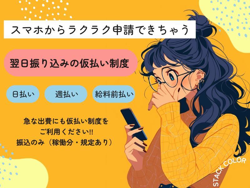 職場環境 ■職場見学も可能なので安心 ■WEB面談受け付けております ■翌日振り込みの仮払い制度あり (弊社規定、稼働分のみ) 喫煙所:喫煙所あり(屋外)