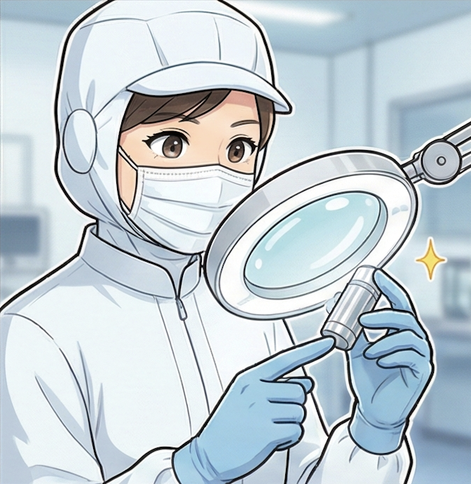円筒形製品の検査・検品スタッフ