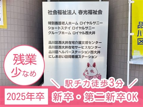 ≪積極採用中≫残業少なめ☆駅チカ徒歩3分◎運転業務なし★昼食350円!26卒の新卒・第二新卒OK★【品川区・西大井駅・デイサービス、介護職・正職員】