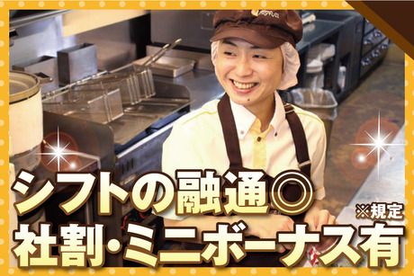仕事内容 < ファミレス「ジョイフル」店舗スタッフ > キッチンでの業務全般をお願いします。 ジョイフルでは、お客様にお出しする料理の最終調理は店舗で行っています。 例えばハンバーグを焼いたり、からあげを揚げたり、できた料理を盛り付けたり。 あなたの作った料理でお客様をおもてなししてみませんか? 自分の作った料理でお客様を笑顔にできる!そんなお仕事です。 < 未経験スタートも応援! > マニュアルや研修プログラムが充実しているので、未経験の方でも安心して始められます。 ジョイフルのスタッフは約90%が未経験スタート。 バイトデビューの方も応援! < ジョイフルは働きやすい! > ・シフトは1ヶ月先まで申請できるので、スケジュールが立てやすい! ・シフトや休み希望はスマホ1つでカンタン申請! →専用のアプリを使って申請・管理ができます。 < こんな方が活躍中! > 高校生から大学生・フリーター・主婦(夫)・ミドル・Wワーカーなど、様々な方が在籍中。 一人できちんとできるまではトレーナーがついて一緒に作業しますので、安心してください。 いきなり一人で現場に出ることはありませんよ。 お皿の持ち方やハンバーグの焼き方などを一つずつ練習しますので、徐々に慣れていけばOKです! < 調理師免許の受験資格も! > 資格取得のチャンスです! ジョイフルで2年以上、キッチンスタッフとして 勤務したら調理師免許の受験資格がとれます! アルバイトをしながらスキルアップができますよ◎
