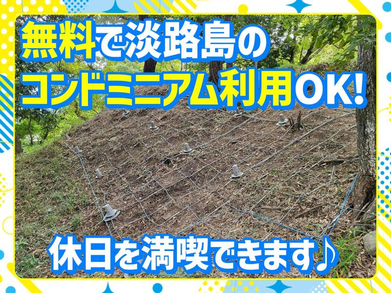 仕事内容 ★普通免許(AT限定OK)をお持ちの方大募集! 普通免許(AT限定OK)を活かして、稼げるお仕事をしてみませんか! 月収40万円以上可能です! 私たちの仕事は、道路や山の斜面が崩落しないようにコンクリートやネット等で覆う法面工事です。 具体的には、以下の業務を担当していただきます。 ・法面工事:道路や山の斜面を保護し、災害を未然に防ぐための重要な作業を行います。地域の安全を確保するために欠かせない役割です。 ・樹木の伐採:法面工事に必要な樹木の伐採も行います。安全で効率的な作業を心掛けています。 ※車(AT限定OK)で現場に向かいます。 ■ 未経験者も安心 ■ 当社では未経験者も大歓迎です! 以下のサポート体制があります。 ・充実した研修制度:経験豊富な先輩社員が丁寧に指導しますので、全くの未経験でも安心してスタートできます。基礎からしっかり学べる環境です。 ・安全対策:安全第一で作業を行い、step by stepで技術を習得できるようサポートします。安心して働ける職場づくりに努めています。 ■ 魅力的な待遇 ■ 私たちの職場では、働きやすい環境と充実した福利厚生をご用意しています。 ◎海を臨める淡路島のコンドミニアムを無料で利用可能! ・3LDKの広々とした部屋にはベッドや和室があり、家族や友達と一緒に利用できます。美しい海を眺めながら、リラックスした時間を過ごせます。 ・各部屋にはキッチンが完備されており、自炊も可能です。地元の新鮮な食材を使って料理を楽しむことができます。 ◎月1回、会社負担で焼肉を楽しめる食事会 ・社員同士の交流を深めるために、毎月焼肉会を開催しています。美味しい食事を囲みながら、楽しいひとときを過ごしましょう。 ■ 働きやすい職場環境 ■ 当社はアットホームな雰囲気が魅力です。 20代から幅広い年齢層の方が活躍中で、高い定着率が自慢です。 公私ともに充実した環境で、長く安定して働けます。 ■ キャリアアップも可能 ■ 未経験からスタートしても、技術を磨くことで高給を目指すことができます。 一緒に成長し、自分自身のキャリアも築いていきましょう。 努力次第で多くのチャンスが広がります。 ■ 募集背景 ■ 事業拡大に伴い、新たな仲間を募集しています。 一緒に成長し、地域の安全を守る仕事に携わりませんか? 私たちと共に未来へ向けて歩んでいく仲間として、一緒に頑張りましょう!