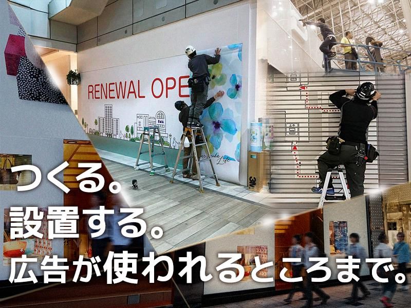 仕事内容 ▶経験、眠らせるのはもったいない◀ 経験、眠らせるのはもったいない。 商業施設、駅などの公共機関、 イベント、展示会―― 人の目に触れる広告看板や案内サイン、 装飾物を制作から現場設置まで 一貫して手がけている会社です。 今回の募集は、 ✔ 現場作業の経験がある方 ✔ 制作作業の経験がある方 いずれかの経験をお持ちの方向け。 「指示通り動くだけ」の現場ではなく 判断・段取り・経験値が、 そのまま戦力になる現場です! ✦ 仕事内容 ✦………………………………… ✅看板、案内サイン、装飾物などの設置作業 ✅社内での制作作業、制作補助 ✅現場での設置・撤去作業 現場作業がメインですが、経験・適性に 応じて制作工程にも関わっていただきます。 「作って終わり」「設置だけ」ではなく、 一連の流れを理解して動けるのが、 この仕事の特徴です。 ……………………………………………………… ◢◤この仕事の魅力 ◢◤ ✨経験がそのまま評価される ✨現場判断・段取り力が活きる ✨広告・空間づくりの“裏側”に関われる アルバイトから社員になった スタッフも多く、紹介入社が多いのも 現場の信頼感が理由です。