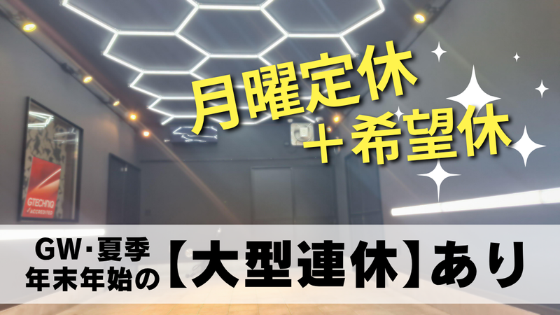 休日休暇 月6~8日 月曜定休日+希望休 GW・夏季・年末年始の大型連休有!