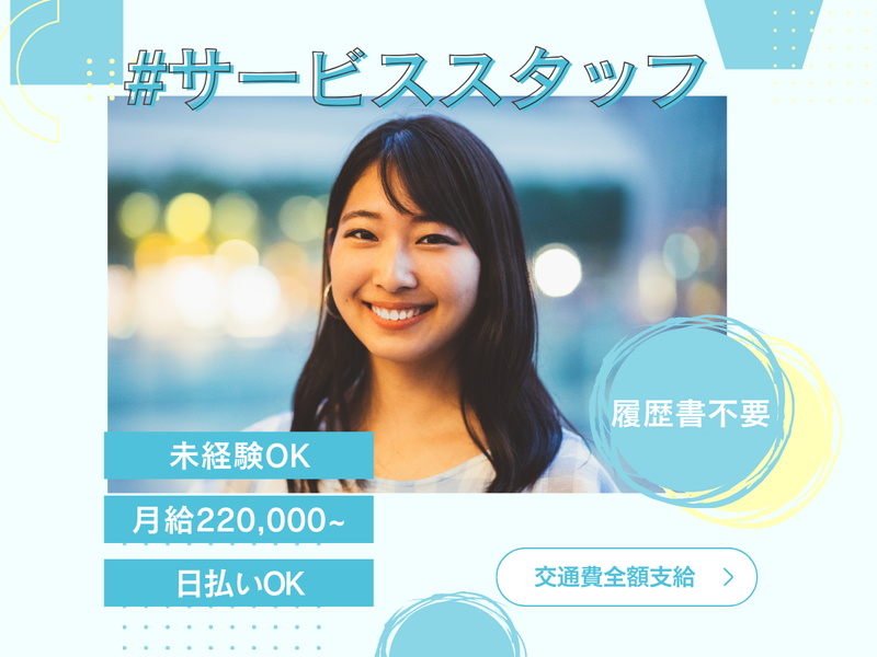 求めている人材 \こんな方にピッタリ!/ 20代~30代活躍中! 未経験・バイトデビュー・社会人経験ゼロでもOK! 学歴・経験・スキルは一切問いません◎ フリーターさん、Wワーク希望の方、ブランクがある方も大歓迎♪ 「人と話すのがちょっと苦手…」という方も、 マニュアル&研修があるので安心スタートできますよ!