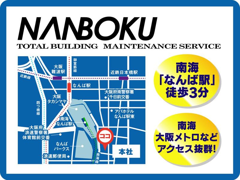 交通・アクセス 南海「難波駅」徒歩5分、大阪メトロ「なんば駅」徒歩8分