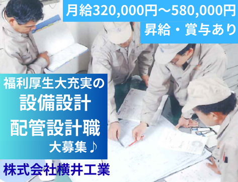 仕事内容 ◆ガス処理設備の設計 工場から出るガスをきれいにする装置を設計します。 ◆脱臭設備の設計 生活や工場で発生するニオイを除去するシステムを考えます。 ◆プラント設備の設計 工場や施設で必要な機械・装置の設計に携わります。 ◆排水設備の設計 河川や下水を安全に流すための配管システムを図面にします。 【この仕事の特徴】 ◎CADを使った図面作成を通して設計スキルが身につく ◎若手の先輩も活躍中!未経験から始めた社員が多数 ◎社会インフラに直結する、やりがいある仕事 ◎将来的には“プロの設計者”としてキャリアアップ可能 安心のサポート体制 ・入社後はレクリエーションを通して基礎知識を学習 ・現場で説明を受けながら実務を習得 ・国家試験や技術講習会への参加も支援 ・ひとり立ちするまで先輩がしっかりフォロー まずは「カジュアル面談・職場見学」からの参加も大歓迎! 安心してスタートできる環境です。 【休日休暇】 年間休日110日 (会社カレンダーによる/面接時に詳しくご説明します) 【待遇】 ・社会保険完備 ・中小企業退職金制度 ・皆勤手当(10,000円) ・家族手当(配偶者10,000円) ・資格手当(国家資格等) ・独身者:希望者はワンルームマンション入居可(社内規定あり) ・年末年始休暇 ・お盆休暇 ・GW休暇 ・臨時休暇 【この仕事の魅力】 ・ 社会に欠かせないインフラを設計で支える ┗街の排水システムを“図面”からつくり、快適な暮らしに貢献できます。 ・ 未経験から設計スキル&資格取得を目指せる ┗CADや施工知識をイチから学べ、働きながら国家資格に挑戦できます。 ・ 施工現場との連携でやりがいを実感 ┗自分が描いた設計が実際に形になる達成感を味わえます。 ・ 長く働ける安定した職場環境 ┗平均勤続年数が長く、腰を据えてキャリアを築けます。