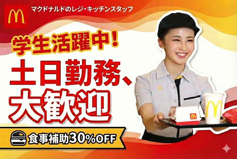 仕事内容 ================== \土日・祝日勤務できる方、大歓迎!/ ================== ⭐土日祝は時給50円アップ! 通常時給は1150円ですが、 土日祝は1200円となります。 効率よく稼げます♪ ⭐1週間ごとのシフト提出で プライベート優先OK◎ ⭐準備支度金支給! 着替え時間も時給が発生します♪ ⭐髪色自由! 自分らしいスタイルのまま働ける環境◎ ⭐面接時、履歴書不要! 友達同士の応募や面接も大歓迎です! ⭐未経験OK! マニュアル完備でブランクも安心◎ - ✅お仕事内容 - カウンターまたはキッチン、 選択できます♪ 【カウンター(接客)】 ・お客様からのご注文伺い ・商品の受け渡し ・レジ操作 【キッチン(調理)】 ・ハンバーガーの調理 ・ポテトの調理 ・資材の補充 どちらもマニュアルが完備されているので、 ゲームのような感覚で楽しく覚えられます♪ 「接客にチャレンジしたい」 「裏方でコツコツ働きたい」 など、面談時にぜひご希望を教えてくださいね。 - ✅平成通り市原店ならではの魅力 - ⭐土日祝は時給が50円アップ! 通常時給は1150円が土日祝は1200円に◎ 週末メインで働きたい方にぴったりの環境♪ また、マクドナルドの全メニューが 30%OFFになる食事補助もあり、 休憩中や仕事終わりも楽しめます。 ⭐サービス残業は一切なし! 給与は1分単位で計算します。 さらに、制服への着替えなどの時間 (10分分)も、1勤務ごとに 「準備時間」として時給を支給。 スタッフの負担を少しでも 減らしたいという想いから 生まれた、当店自慢の制度です。 ⭐髪色自由 「接客業だから黒髪にしないと…」 なんて心配は不要! 髪色は金髪やブルー、ピンクなど 何色でもOKです♪ あなたの個性を活かしたまま、 元気に活躍してください。 - ✅会社について - 世界中で愛されるマクドナルドを 運営している、 「有限会社ナサ」です。 当店では、スタッフ一人ひとりが 自分らしく、楽しく働ける職場づくりを 大切にしています。 特に土日の店舗を支えてくれる 新しい仲間を募集しています! 「週末だけ働きたい」 「学校がない日に稼ぎたい」 そんな希望を全力で応援します!