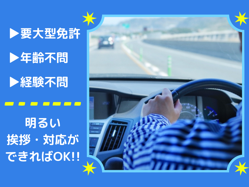 求めている人材 要大型免許 ・年齢不問 ・経験不問 ・60歳以上のシニア活躍中! ・明るい対応の挨拶ができる方 / 資格を活かしてほどよく働きたい! \ そんな方も大歓迎!