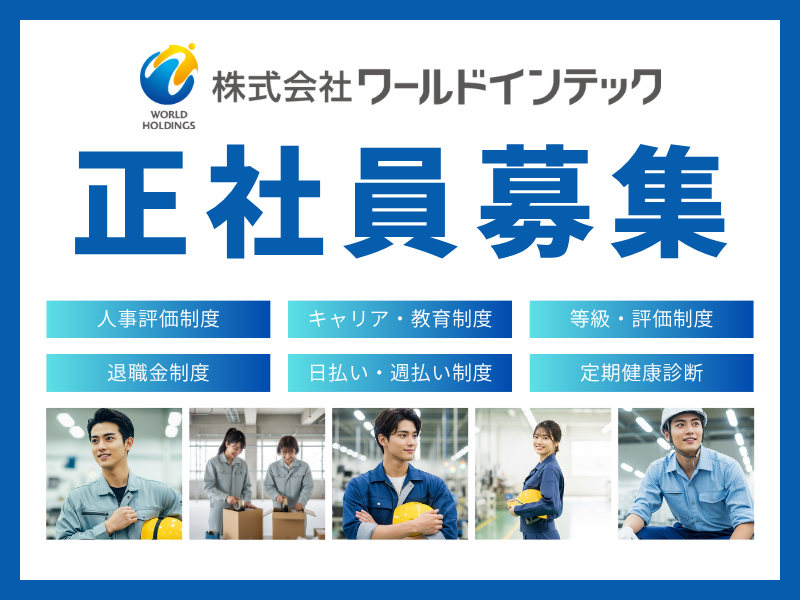 求める人材: 20代~40代の男女スタッフが活躍中! 在籍のスタッフは全員ワールドインテックです! * 学歴不問 * 経歴不問 * 履歴書不要 \こんな人におススメ!/ * 正社員で働きたい * 月給制の仕事がしたい * 石川県能美市で仕事を探している まずは「話を聞くだけ」でもOK! 最短即日で内定GETできます◎ ==お仕事相談会実施中== 事前予約も履歴書も必要なし! 手ぶら・私服でサクッと相談◎ その場でお仕事紹介&面接OK! ・日時:平日10時~16時 ・場所:石川県金沢市本町2-15-1 ポルテ金沢9F ・TEL:080-3729-3859(担当:ワダ) \インディードを見た!とお伝えください/