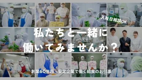 資格 必要資格:なし “やってみたい”気持ちだけでOK! あとはしっかりサポートします♪ ■■□―――求める人物像―――□■■ 「こどもたちの笑顔をつくるために 手間ひまを惜しまず、ひと手間をかける」 それが私たちの企業姿勢です。 私たちと一緒に真心をこめて、 てしおにかけた給食を作っていただける方を 募集いたします。