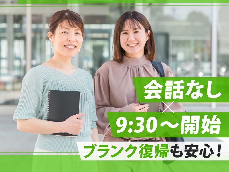 アピールポイント: ◆会話なし・メール中心・朝9:30開始 「英語を使う仕事に戻りたい。」 「でも、いきなり会話や電話対応は少し不安…。」 そんな方にこそ選ばれている、 英文メール・書類確認中心の事務ワークです。 勤務は9:30スタート。 朝に余裕を持ちながら、これまでのキャリアを 自然に取り戻せます。