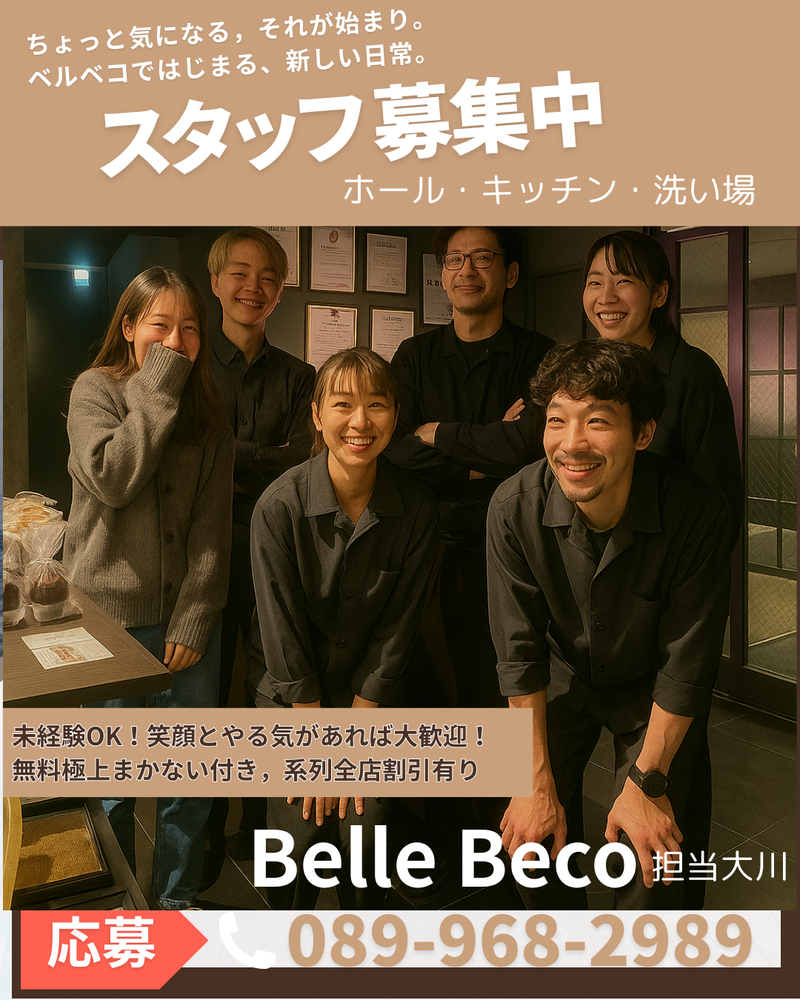 選考プロセス ⭐面接1回 ⭐職場見学も可 ⭐友達と一緒に応募もOK 美味しいまかないに、自分らしく働けるスタイル、 スタッフ同士のあたたかい関係。 ベルベコには、“働くこと”が 楽しくなる理由がたくさんあります。 ちょっと気になった方も、 まずはお気軽にご応募ください! あなたと一緒に働けるのを、 楽しみにお待ちしています✨✨