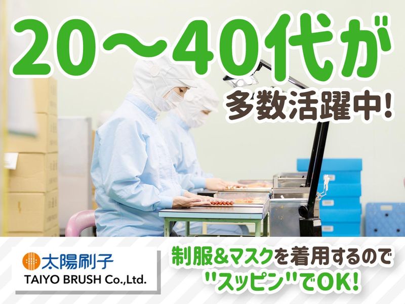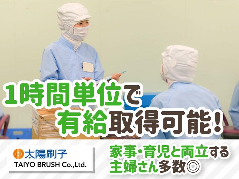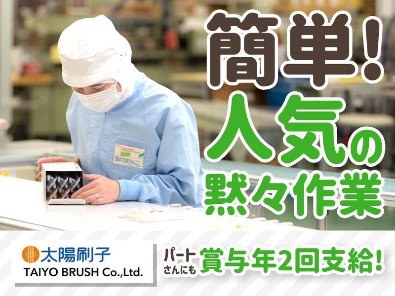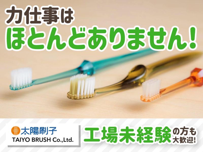 仕事内容 ❁❁主婦さん活躍中!家庭と両立応援❁❁ *20~40代女性スタッフが活躍中 *スッピンにラフな服装で楽に出勤OK *週2日〜、扶養内で働ける柔軟シフト! *パートさんでも1時間から有休取得可能! *特別な経験・資格・知識は一切不要! *原則、土日祝休み◎賞与年2回支給あり♪ ❁.。.:*:.。.✽.。.:*:.。.❁.。.:*:.。.✽.。.:*:.。.❁ ✅お仕事内容  ̄ ̄ ̄ ̄ ̄ ̄ ̄ ̄ ̄ ̄ ̄ ̄ ̄ ̄ 生活に欠かせない“歯ブラシ”の 製造工場でのお仕事。 完成した歯ブラシに 毛がしっかりと植えられているか、 持ち手部分にキズがないか、 などを目視確認する作業です。 座り作業がほとんどで、 軽くて小さいものを扱うので、 体力的な負担はほとんどありません♪ 空調完備の快適な職場で気持ちよく作業できます◎ 周りには社員が常にいるので、 わからないことはすぐに解決できます。 安心してお仕事を覚えていけますよ! ❁.。.:*:.。.✽.。.:*:.。.❁.。.:*:.。.✽.。.:*:.。.❁ ✅お仕事のポイント!  ̄ ̄ ̄ ̄ ̄ ̄ ̄ ̄ ̄ ̄ ̄ ̄ ̄ ̄ ❁ 家庭と両立しやすい環境! 週2~、短時間もOKなので 扶養内で働きたい方にもぴったり! (もちろんフルタイムも歓迎です◎) 通院やお子さまの行事がある時にも、 1時間単位で有休が取れるので便利♪ ❁ 服装自由! 制服とマスクがあるので、 すっぴん・髪はノーセットでもOK! ラフに出勤しているスタッフがほとんど♪ ❁ 食堂完備!お弁当が138円! 日替わりの美味しいお弁当が、 と~ってもお安く購入可能! 現スタッフのほとんどが 毎日のようにお弁当を注文しています! さらに食堂には給茶機もあり、 休憩時はお茶飲み放題◎ ぜひ、食堂でお昼を食べてみてください◎ ❁.。.:*:.。.✽.。.:*:.。.❁.。.:*:.。.✽.。.:*:.。.❁ 面接の際に職場見学を行いますので、 実際の作業をイメージすることができます。 いろいろな種類の歯ブラシを扱うので ちょっとワクワクするかも…♪ ❁ まずはお気軽にお問合せください! ⏩078-854-6056 ⏩http://www.taiyo-brush.co.jp/