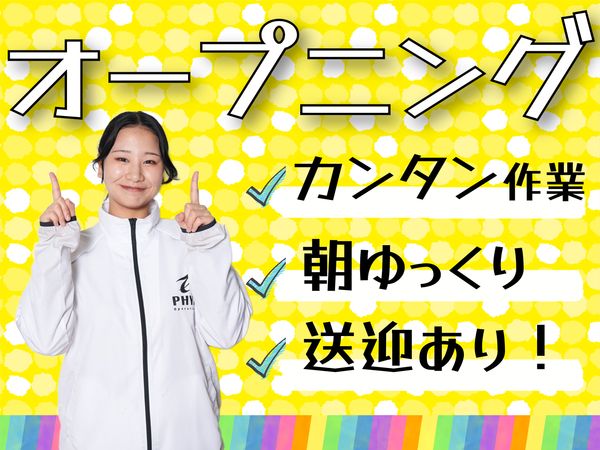 仕事内容 ✅️朝ゆっくり10時スタート!残業なし✅️ ✅️久山町×オープニングスタッフ追加募集✅️ \2025年9月オープン!/ \コツコツ作業メインの軽作業スタッフ募集/ 【⭐️おすすめPOINT⭐️】 ○オープニングスタッフ追加募集! ○週3日~OK!日勤専属スタッフ ○未経験OK!20代・30代・40代・50代と幅広く活躍中! ○休憩スペース完備! ○しっかり高時給&福利厚生もバッチリ! 【⭐️仕事内容⭐️】 大手ネット通販会社の物流拠点での軽作業です。 ネット商品の入荷・出荷時の作業を担当します。 ✿入荷作業✿ 倉庫に到着した商品(荷物)を ハンドスキャナを使用して「ピッ」と読み取り、 棚に入れていく作業です○ 棚にどんどん入れていく覚えやすい作業です! ✿出荷作業✿ スキャナを確認して、出荷する商品を探して、 商品のバーコードを「ピッ」と読みとり →商品をカートに入れる作業です! *誰がいつ作業をしてもよいように 一人ひとりの業務は可能な限りシンプルにしています! *未経験からのスタートでも、覚えていただきやすい仕事内容です。 【⭐️未経験も安心⭐️】 ○入社後は一つひとつ業務を習いながら覚えていきます! ○マニュアル完備! ○安全に配慮された職場なので、安心してお仕事できます。 【⭐️職場環境について⭐️】 ○2025年9月オープンの広くてキレイな物流拠点です。 天井が高く、開放的ですよ(^^) ○ウォーターサーバーあり ○休憩スペースあり(お昼ごはんの持ち込みOK!) ○スポットクーラーなどを用意 など、働く環境が整っていますよ! ・。・。・。・。・。・。