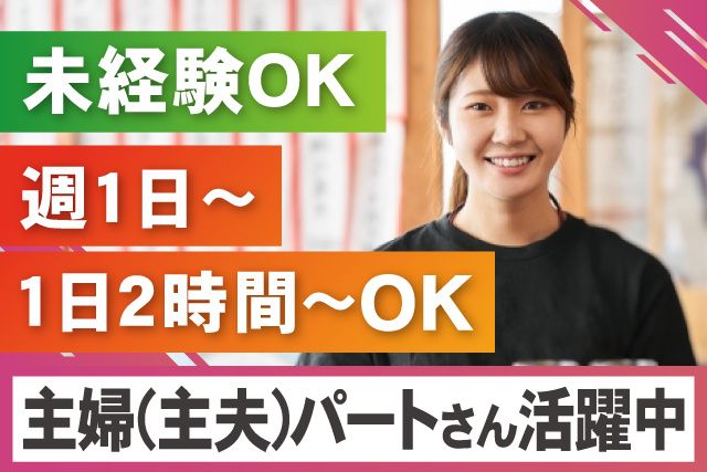 仕事内容 焼き肉レストランでのホールスタッフ パート・アルバイト募集! 未経験大歓迎!しかも、美味しいまかない付き。 週1日~、1日2時間~働けます! アルバイトデビューにもおススメです。 家事や育児、学業の合間に働けます。 シフトは申告制です。 ご家庭の事情や学校行事、プライベート考慮します。 ご希望の時間・休日などお気軽にご相談ください。 (仕事内容/ホールスタッフ/パート・アルバイト) ・お客様のご案内・接客 ・ドリンクづくり ・料理の提供 ・ホール内清掃 ・会計・レジ ・片付け など 先輩スタッフがマンツーマンで一から丁寧に 教えますので未経験の方も安心してご応募下さい。 もちろん飲食業や接客業の経験がある方、 ブランクがある方も大歓迎! (シフトの融通ききます!お気軽にご相談ください) 当店では学生さんや子育て中の主婦・主夫の方も 働きやすいよう、シフト希望は可能な限り答えます。 1日2時間~、週1日~勤務可能 日勤のみ、夜勤のみ、ランチタイムのみや 平日のみ(土日祝休み)、週末のみなど、 勤務可能な時間や曜日を、何でも相談してください。 「短時間で働きたい」 「学業や家事の合間に働きたい」 「扶養内のパートを探している」 そんな方にもピッタリです! ※お客様の残り方次第で上がり時間は変動します。 【ご応募について】 WEBまたはお電話にて受け付けております。 ご質問等のお問い合わせもお気軽にどうぞ! 電話 0476-91-4129 (オススメポイント) ・パート・アルバイト ・週1日~勤務OK ・短時間勤務(1日4時間以内) ・時間を選べる・曜日を選べる ・未経験大歓迎 ・週末のみ勤務OK・平日のみ勤務OK ・午後のみ・昼から働く・夕方から働く ・年齢・経験・性別不問 ・主婦パート・中高年世代活躍中 ・学生活躍中 ・フリーターさんも大歓迎 ・美味しいまかない有 ・交通費支給