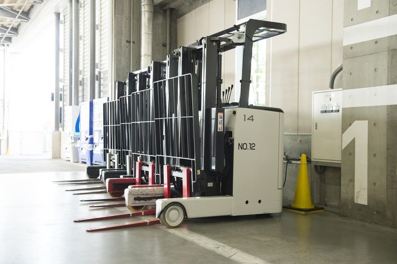 倉庫でのコンビニの冷凍商品フォークリフト作業