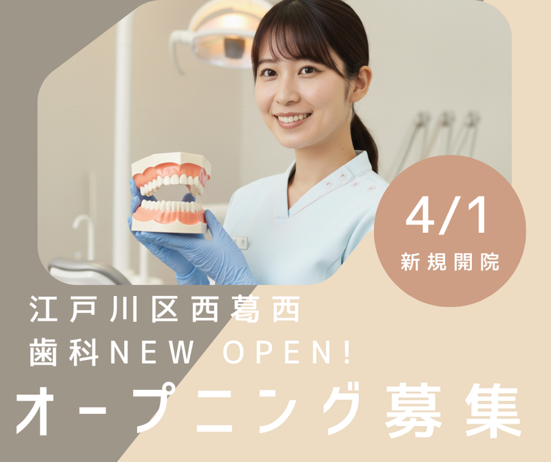 仕事内容 《2026年4月1日OPEN!くるみの森歯科》 当院は、小さなお子さまからご高齢の方まで、すべての世代に寄り添いながら、お口の健康を通じて、患者さまの全身の健康をサポートする歯科医院を目指しています。 <当院の特徴> ■「一生モノの健康」を守る予防歯科 単にむし歯を防ぐだけではありません。 正しい呼吸、舌の動き、食べ方などを身につけることで、お口の機能が正しく育たない状態(口腔機能発達不全症など)を未然に防ぐ「本質的な予防」に注力します。 ■口腔機能の育成と小児矯正 子どもたちの健やかな成長をサポートするため、以下の治療に力を入れています。 ・マイオブレース矯正: 呼吸や飲み込み方など、お口の「機能」を根本から整えます。 ・インビザライン: お口の機能を育みながら、美しい歯列を整えます。 *ー* 【仕事内容】 歯科衛生士業務全般 ・歯科疾患の予防処置(SC、SRP、PMTC、フッ化物塗布など) ・歯科保健指導(ブラッシング指導、食生活指導など) ・ホワイトニング ・歯科診療の補助 ・器具の滅菌、準備、院内清掃 患者さまは、小さなお子様からご高齢の方まで幅広く来院される予定です。 地域に根差したクリニックで、患者さま一人ひとりに寄り添った予防・ケアをお願いします。 *ー* \当院のおすすめポイント/ 〇オープニングスタッフ  ̄ ̄ ̄ ̄ ̄ ̄ ̄ ̄ ̄ ̄ ̄ 全員が同じスタートライン! 新しい医院の立ち上げに携わる貴重な経験ができ、みんなで協力しながら働きやすい職場を作っていくことができます。 〇総合的な歯科医療  ̄ ̄ ̄ ̄ ̄ ̄ ̄ ̄ ̄ 矯正、歯周病、マイクロスコープなど、専門的な治療に触れる機会が豊富。 幅広い知識と技術を習得し、歯科衛生士として大きく成長できる環境です。 〇最新の設備を完備  ̄ ̄ ̄ ̄ ̄ ̄ ̄ ̄ ̄ 精密な診断と治療を行うための最新機器を完備。 これらの設備を活用することで、より質の高い歯科医療に携わることができます。 安心して働ける環境を整備しています。