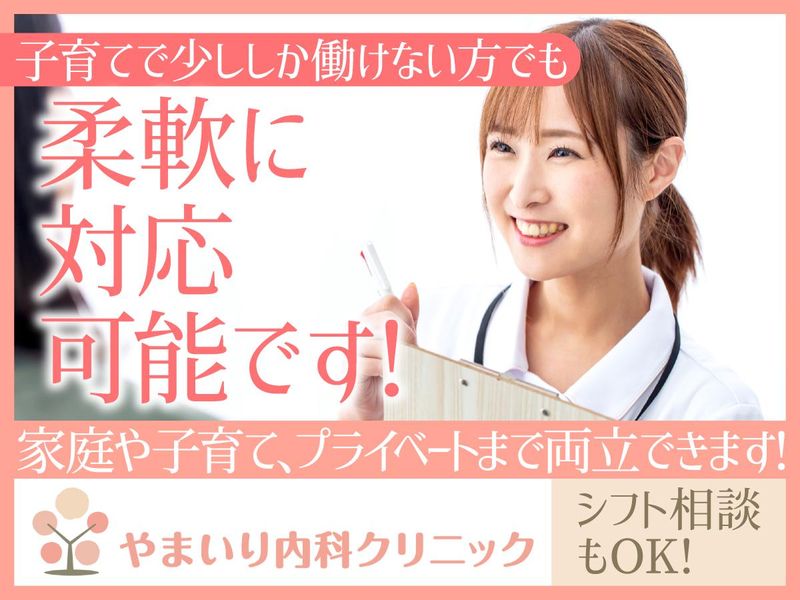 求めている人材 ◎要看護師資格 ◎PCでの入力が出来る方 ◎ブランクOK! ◎明るく元気に対応できる方 ◎扶養内勤務で働きたい方 ◎子育てが落ち着いて久しぶりに働きたい方 ◎子育て中の方もお気軽に! ◎院長は、子どもの体調不良や学校行事のことなど、子育てに協力していきます。 「職場環境づくりはこれから皆さんと一緒に作っていきたいと考えています。 またさらに働きやすい環境にするために、皆さんの意見やアイデアも積極的に取り入れたいと考えています。 子育て中の方も働きやすいようにシフトも柔軟に対応します。 皆さまからのご応募お待ちしております。」 院長より