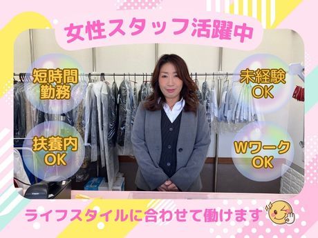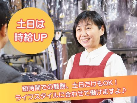仕事内容 <女性スタッフ多数活躍中> 気軽に始められるカンタンなお仕事! 土日祝時給UP!週2日~OK! 主婦(夫)さん・Wワーカーさん大歓迎! あなたに合った曜日・時間での勤務を 考慮します!扶養内勤務もOK! 丁寧なサポートで未経験でも安心! 嬉しいクリーニング割引制度もあり! 【仕事内容】 クリーニング店の受付・レジ、 衣服の仕分け・お渡し等をお任せします。 <具体的な内容> ・お客様から衣服の受付 ・工場への出荷作業 ・クリーニングの済んだ衣服の 仕上がりチェック ・お客様へ衣服の返却 <初心者さんも活躍中!すぐ覚えられる> 接客や衣服の扱い方などは研修で イチから丁寧に指導します。 難しい作業はないので、 ゆっくり丁寧な作業を心掛ければOK! 働きながら接客スキルや衣服の知識を 身に付けていきましょう! <ライフスタイルに合わせて自由に働けます!> 「第二の人生を楽しみたい!」 「子供の手が離れて、時間が出来た」 「年齢は高めだけど、元気だし働きたい」 「新しく色々覚えるのは難しそうだから、 自分でもすぐできる仕事だといいな~」 店舗で働いている60代女性スタッフは、 「子供が独り立ちしてから家で旦那と二人で、 時間も余裕だしパートしたいな~と思ってたの。 年齢が高めだから断られちゃうことも多かったんだけど、 まだまだ元気だし働きたくって! クリーニングって家事の知識活かせるし、 常連さんも多くて楽しいから週5で勤務しちゃってるわ~」 と、話してくれました! 衣服を扱うクリーニング店では 家事の知識・経験をすぐに活かせます! 「今まであんまり仕事探しをしたことなくて」 「新しい知識をいれるのも不安」 そんな心配はいりません! あなたの経験が必要な職場なので、 ぜひ当社で第二の人生を始めてみてください!