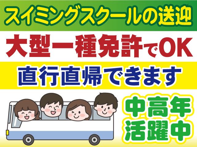 仕事内容 送迎バスドライバー募集 〇中型限定解除、または大型1種の免許があればOK 〇送迎ドライバー未経験者歓迎 〇60歳以上の中高年・シニア世代も活躍中 〇土曜日のみでWワークにもぴったり 〇直行直帰OK (お仕事内容) スイミング教室の送迎バスドライバー ・送迎先:習志野市津田沼付近 ・車両:マイクロバス ・直行直帰可 ・土曜のみ 中型限定解除以上の免許があればOK 大型1種免許でOKなので、トラックドライバーだった方も活躍しています! 幼稚園バスドライバーや、企業の送迎などの経験も活かせます 若手から中高年・シニアまで活躍中 30代、40代、50代、60代活躍中! 定年後の再スタートの方や Wワークにピッタリなので 月の収入にちょっとプラスしたい方にもおすすめです! 長く活躍できる会社です 運行台数300台以上の実績ある会社です。 だから長期安定。 定年70歳まで働けます。 疑問・質問・不安な事などあれば お気軽にご相談下さい。