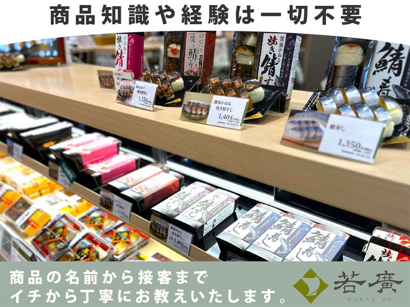 仕事内容 ✨2024年OPEN福井駅ナカ♪ ショッピングセンターでのお仕事♪ ╭──────────・⭐・・─── 福井名物を扱う販売のお仕事です♪ テレビや各種メディアで紹介された 人気商品‼お得に買える社割もあり♪ ✨⏩0770-53-3844 (採用担当:永島)まで 電話でのご応募や、 お仕事内容のお問い合わせも大歓迎♪ ╰─・・⭐・──────────── <お仕事内容> ⏩接客・販売・レジ対応 (バーコード読み取り) ⏩商品の陳列・補充・在庫チェック ⏩試食のご案内や商品の説明 (販売接客) ※包装済みの焼き鯖すしやお弁当を レジ業務と袋に入れてお客様に お渡しするシンプルな業務です! 難しい業務は一切ございません! ✅未経験の方も安心♪ 商品や接客を学ぶ座学研修を 初日に実施いたします。 ✅働き方色々♪ 短時間シフトや扶養内勤務も選べます! ┏━━━━━━━━━━━━━━┓ 頑張りや成長を後押しします! ┗V━━━━━━━━━━━━━┛ ⭐お店をよくするアイデアは大歓迎♪ 頑張りは昇給などでしっかり評価します。 ⭐正社員登用制度もあり、 ゆくゆくは正社員として 店舗運営に携わることも可能です。 現在も正社員枠がございますので、 入社後のスピード昇格も実現可能です。 ༶ ༶ ༶ ༶ ༶ ༶ ༶ ༶ ༶ ༶ ༶ ༶ ༶ ༶ ༶ ༶ ༶ ༶ 株式会社若廣は、 空弁ブームのきっかけとなった 「焼き鯖すし」を手がけ、 全国の百貨店催事にも数多く出店しています。 焼き鯖すしをはじめ、 北陸名産の鱒の寿しや、 北陸の風土を感じる 柿の葉寿しなど、 若狭の食文化を全国へ 届けたいという想いから 誕生したブランドです。 『いつもそばに、もっと鯖に。』 この言葉を大切に、 今では全国に目を向け、 各地の食と向き合い、 新たな味を生み出しながら、 皆様に特別な『幸』を お届けし続けています。 【採用担当より】 従業員の皆さんが プライベートと両立が出来るよう、 シフトの柔軟性は特に大切にしています。 家庭や学校と両立出来る働き方を 一緒に考えていきますので お気軽にご相談ください。 仕事内容も とてもシンプルで簡単な業務ばかりです。 自分に出来るかな、、、 そんな不安をお持ちの方も まずはお話だけでもご連絡をお待ちしております。 【HP】 ・✦https://www.wakahiro.co.jp/✦・