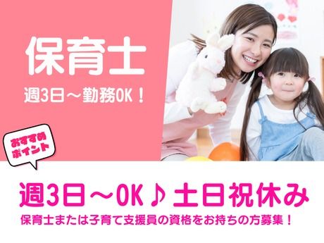 <★保育士・子育て支援員歓迎!>週3日~OK♪土日祝休みで柔軟に働ける◎
