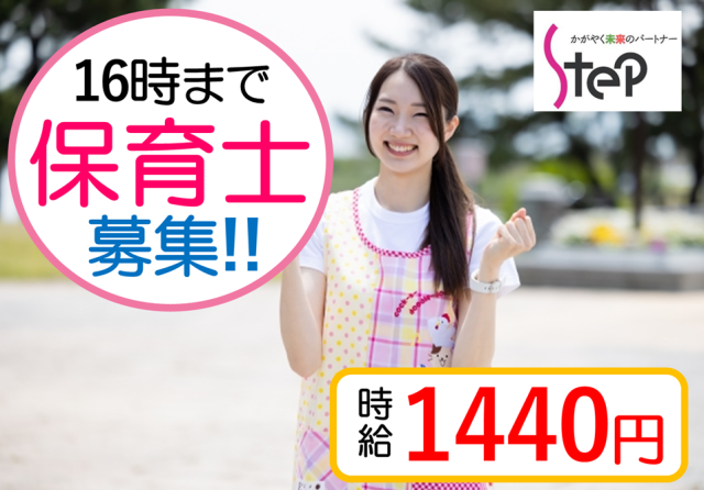 \月収目安17万円/ 16時に定時退社できます♪ / 土日祝休み / 残業なし 株式会社ステップグランドスタッフ 認定こども園の保育士 . ■案件NO,15300■お電話で案件番号をお伝えください! *:;;;:*:;;;:**:;;;:*:;;;:**:;;;:*:;;;:**:;;;:*:;;;:**:;;; 認定こども園の保育士の求人案件です♪ *:;;;:*:;;;:**:;;;:*:;;;:**:;;;:*:;;;:**:;;;:*:;;;:**:;;; \働きやすさ!/ ・平日だけ、土日祝休み♪ ・16時迄のお仕事 ・シフト勤務なし! 16時迄のお仕事なので 退勤後から夕食までの時間に ゆとりがあるのも嬉しいですよね◎ しっかり収入はほしいけれど 17時迄の勤務は厳しいな... といった方にぴったり☆ 【嬉しい高時給】 時給1440円と高時給なので 16時までの勤務でも 月収17万円以上が目指せます☆ _____________ 《こんな園さんです》 ・定員150名の認定こども園 ・0~5歳児が通います ・開園時間は7:00~20:00 ・平屋のひろびろした園舎 ・2021年に建て替えました☆ 中庭には芝生があったり お洒落な多目的ホールもあり、 全体的にきれいな園舎♪ 当社スタッフも活躍中で 職員さんの定着率も高く 働きやすさも自慢です◎ _____________ \ステップのここが嬉しい/ 園への見学時も同行します☆ 働く上で園へ伝えておきたいこと、 時間の相談などなど ご自身では伝えにくいことも コーディネーターが伝えますので 見学時も安心です♪ 事前に園の雰囲気を知ってから 入職に繋げることができるのも 嬉しいポイント! 1人で悩まなくても大丈夫! 保育士としての経験がある コーディネーターが あなたのお仕事開始まで 精一杯サポートします! もちろん、お仕事開始後も 継続的にサポートしますので ご安心ください☆ ・・・・・・・・・・・・・・ \希望登録/も受付中! 希望の条件で働けるチャンス☆ 通勤時間や、勤務時間、勤務曜日など ご希望をお聞かせいただいた上で あなたにぴったりの園さんを ご提案させていただきます♪ .
