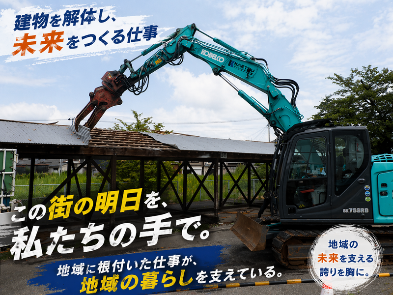 仕事内容 株式会社カエツ工業は、 「お客様を大切にし、地域社会に必要とされる会社を目指す」 「全従業員の幸せを実現する」 という経営理念のもと、社是「和をもって地域の生活総合サービスに尽くす」を掲げています。 環境事業を中心に、介護・不動産・外食・健康促進など幅広い事業を展開し、地域の暮らしに関わる課題を多面的に支えてきました。創業以来変わらないのは、「誰もやりたがらないことをやり、喜ぶ人がいるなら我々がやろう」という想いです。今回募集するのは、その精神を現場の最前線で体現する環境事業部の解体工事スタッフです。 ✅【この求人のポイント】 ・老朽化した住宅や空き家などの解体工事を中心に担う、地域密着の現場仕事です。 ・未経験歓迎。ほぼ全員が未経験からスタートしており、先輩が一から十まで教えます。 ・完全週休2日、原則残業少なめ。家庭都合の休みも相談しやすい環境です。 ・作業服、安全靴、長靴などの備品は会社支給。資格取得支援もあります。 ・新人を一人にしない、面倒見の良い職場です。 ✅【ミッション】 建物解体を安全・確実・期限内に完了させ、地域の困りごとを解決すること。 今回の採用は単なる欠員補充ではありません。人員不足で本来取れる仕事を取り切れていない状況を変え、将来的には環境事業部の中核を担う存在になっていただくことを期待しています。 ✅【主な仕事内容】 ■解体工事 屋根はがし、内装解体、資材分別、廃材の搬出などを担当します。近隣住民への配慮や現場の安全確認も大切な仕事です。解体後に出た廃材は、運搬から処理まで一貫して責任を持って対応します。 ■チームで進める現場作業 現場は基本3〜4名のチームで動きます。壊すべきものだけを壊す品質、安全第一の行動、工期内での完工、適切な運搬・処理が評価の軸です。現場によって毎日やることが変わるため、飽きずに成長できます。 ■その他環境事業部の幅広い仕事の応援 環境事業部は、解体だけでなく、不用品の片付け、一般・産業廃棄物の収集運搬、浄化槽・排水処理施設の維持管理、給排水設備工事まで担っています。地域で「困ったらまず相談される」存在として、幅広い依頼に応えています。 ✅【1日の流れ(例)】 会社に集合し、荷物や工具を積んで現場へ向かいます。現場では、その日の工程に合わせて屋根を剥ぐ、内装を解体する、発生した廃棄物を運搬するなどの作業を行います。案件ごとに内容は変わりますが、決まった案件に対して現場で工事作業を進めるのが基本です。 ✅【この仕事の面白さ】 ・地域で本当に困っている人に、なるべく早く駆けつける文化があります。 ・「頼んで正解だった」「お願いして良かった」と言っていただける瞬間が大きなやりがいです。 ・解体工事を軸にしながら、将来的には収集運搬や水まわりなど、幅広い経験に触れられる可能性があります。 ・一つの仕事だけを極めるより、いろいろな経験を積みながら成長したい方に向いています。 ✅【育成・サポート】 ・未経験者は先輩がつきっきりで指導します。 ・「1から10まで」だけでなく、「一歩先・二歩先を考える」思考まで教えます。 ・講習会、セミナー参加、資格取得支援あり。中型免許や重機資格も入社後取得可能です。 ・前職は料理人、印刷工場勤務、市役所の臨時職員などさまざま。異業種出身者も活躍しています。 ✅【働きやすさ】 ・完全週休2日 ・原則残業少なめ ・家庭の事情などの休みも相談しやすい ・作業服、安全靴、長靴などは会社支給 ✅【従業員の声】 Q. カエツ工業ってどんな会社ですか?職場の雰囲気を教えてください。 「誠実さと責任感を大切にしていて、本当に困っているお客様にはなるべく駆けつけよう、という意識がみんなにあります。最近は、新しく入った人に対してもみんなが声をかけるようになっていて、「分からないことがあったら今聞いた方がいいよ」と、一人にしない雰囲気があります。会社のイベント参加を無理強いされることもなく、自然体で働ける会社です。正直、入って2日目にはもう居心地がいいと感じられるくらい、馴染みやすいと思います。」(Nさん、環境事業部) 「体力は必要ですが、その分チームワークがあって、助け合いながらみんなで成長できる職場です。建設のスタートを担う解体の仕事を、仲間と一緒に進めていけるのが魅力です。」(Uさん、環境事業部) Q. 普段はどんな仕事をしていますか? 「主に建物の解体作業を担当しています。重機オペレーターや、手作業での内装解体、資材の分別作業などが中心です。現場によって毎日やることが変わるので、同じことの繰り返しになりにくく、毎日楽しく働けています。」(Uさん、環境事業部) Q. この仕事のやりがいや面白さは何ですか? 「難しい案件でも、なんとかやり切って、お客様から「頼んで正解だった」「お願いして良かった」と言われた時が一番うれしいです。急ぎの依頼に対応できた時も、やって