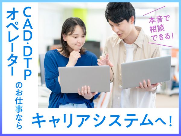 職場環境 屋内喫煙所あり ◆キャリアシステムは 平成元年(1989年)に設立した 北陸生まれの総合人材サービス会社です。 事務職派遣を中心に、IT専門職、CAD業務、製造作業など、 幅広い分野で求人をご提案しております。 まずはあなたが希望するお仕事の条件を 遠慮せずに言ってください! 皆さんの立場に立ってお話し伺います♪ お気軽にご相談ください◎